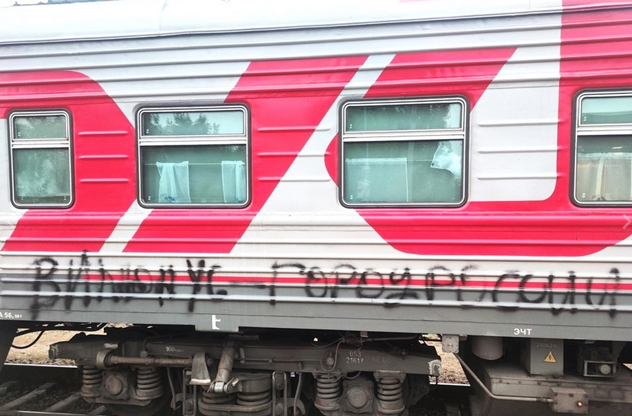 "Начальник поезда со своими подчиненными под наблюдением пограничников стерли надписи и буквы с помощью песка", - сообщил портал, отметив, что поезд не задержали и после всех проверок он двинулся дальше.