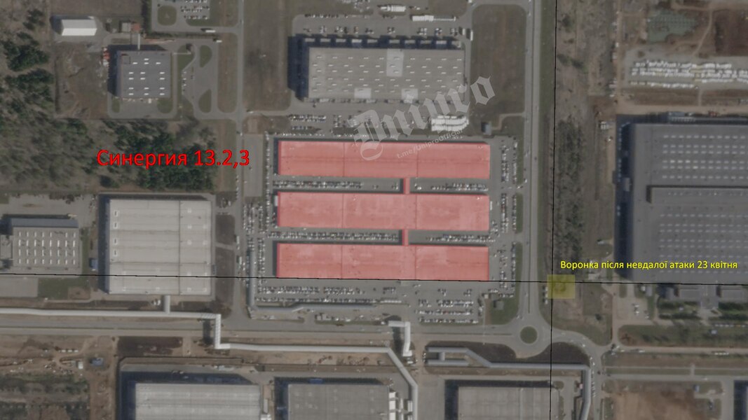 "Пока достоверной информации о прилетах нет, - пишут аналитики и вместе с тем добавляют: - Но предварительно поражены корпуса "Синергии" 13.2 и 13.3, на которых собирают двигатели и корпуса для российских дронов. Ожидаем спутниковые снимки или кадры ОК".