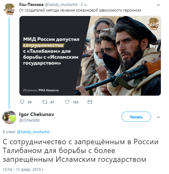 Как известно, в России "Талибан" был признан террористической организацией в 2003 году. Его деятельность на территории страны запрещена.
