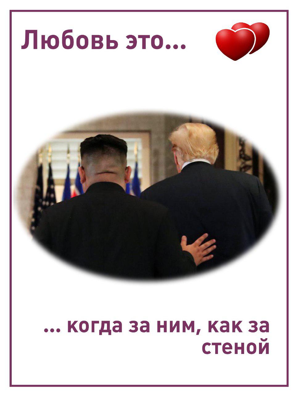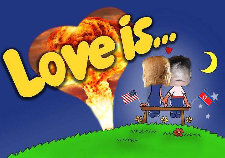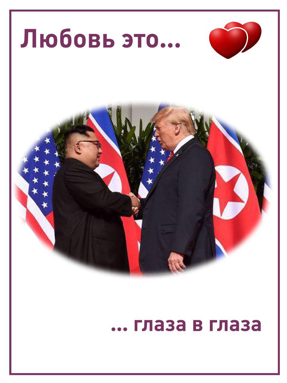 Тем временем издание "Лентач" показало, как выглядели бы отношения Трампа и Ким Чен Ына, будь они героями вкладышей популярной жвачки Love is.