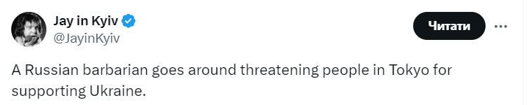 "Российский варвар ходит и угрожает людям в Токио за поддержку Украины".