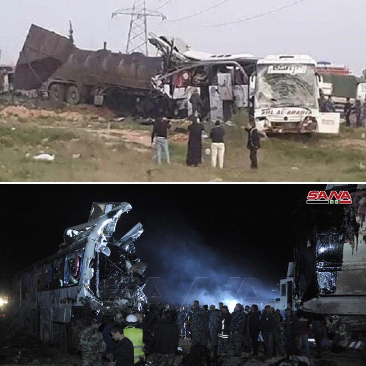 По словам министра внутренних дел Сирии Мухаммада Халида Ар-Рахмуна, причиной ДТП стала неисправность тормозов бензовоза. Водитель грузовика потерял контроль над управлением, врезался в пассажирские автобусы и протаранил еще 15 легковых автомобилей.
