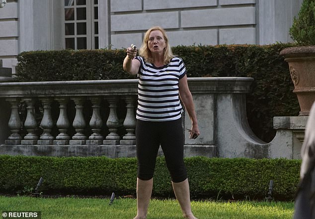 Когда погромщики ворвались на частную территорию и начали оскорблять белых, те не стали преклонять колени, а наставили на погромщиков оружие. Они решили защитить свой дом от проходящих мимо протестантов. Женщина была с пистолетом, а ее муж с ружьем.