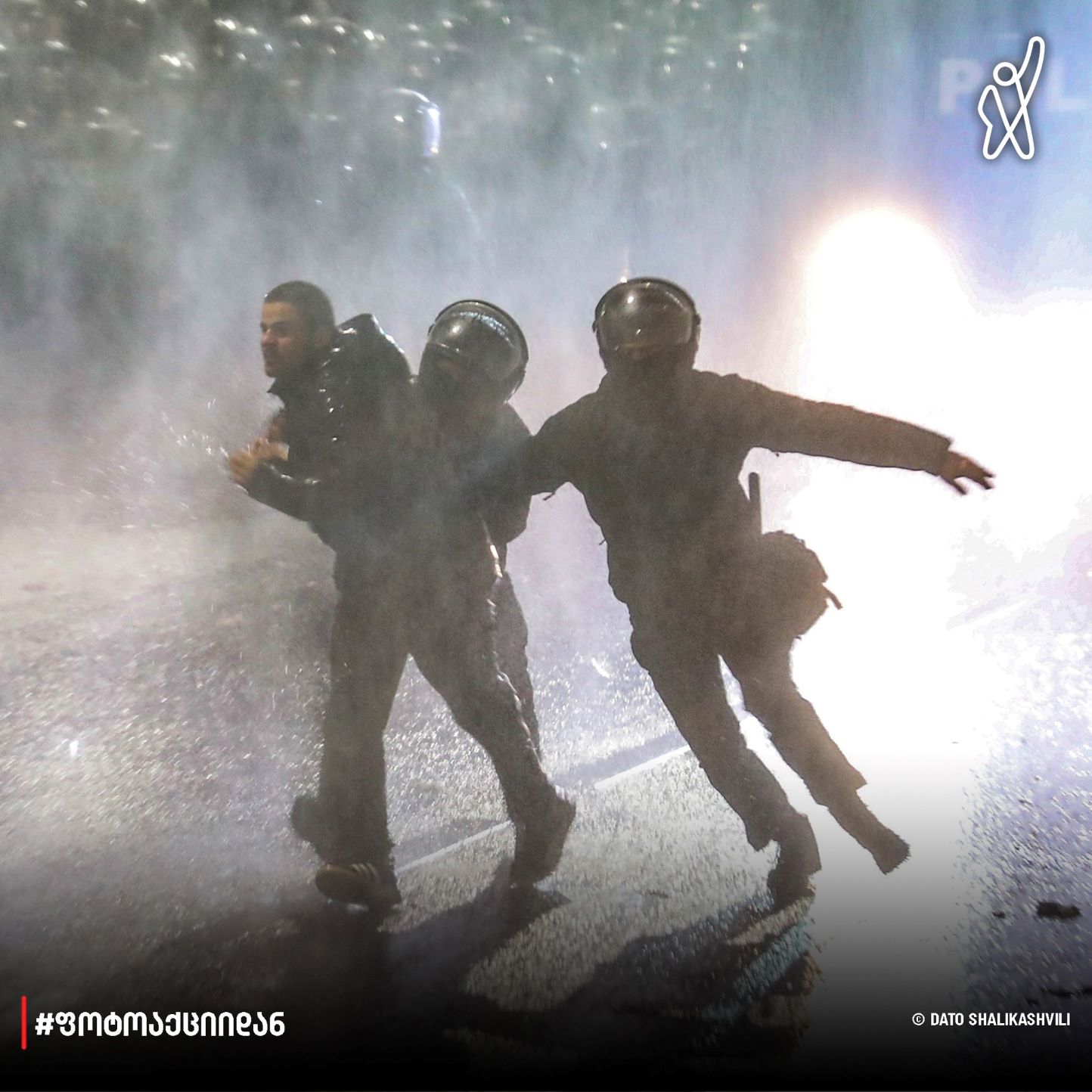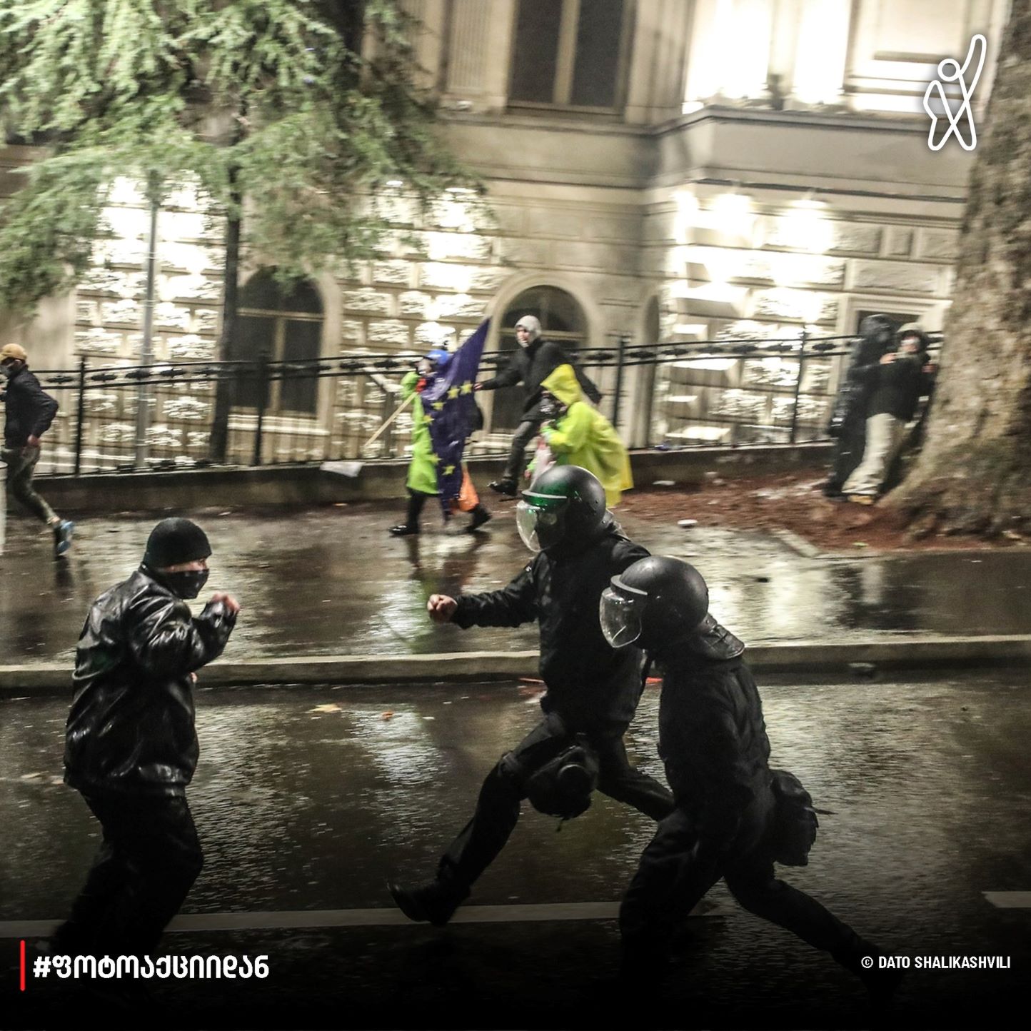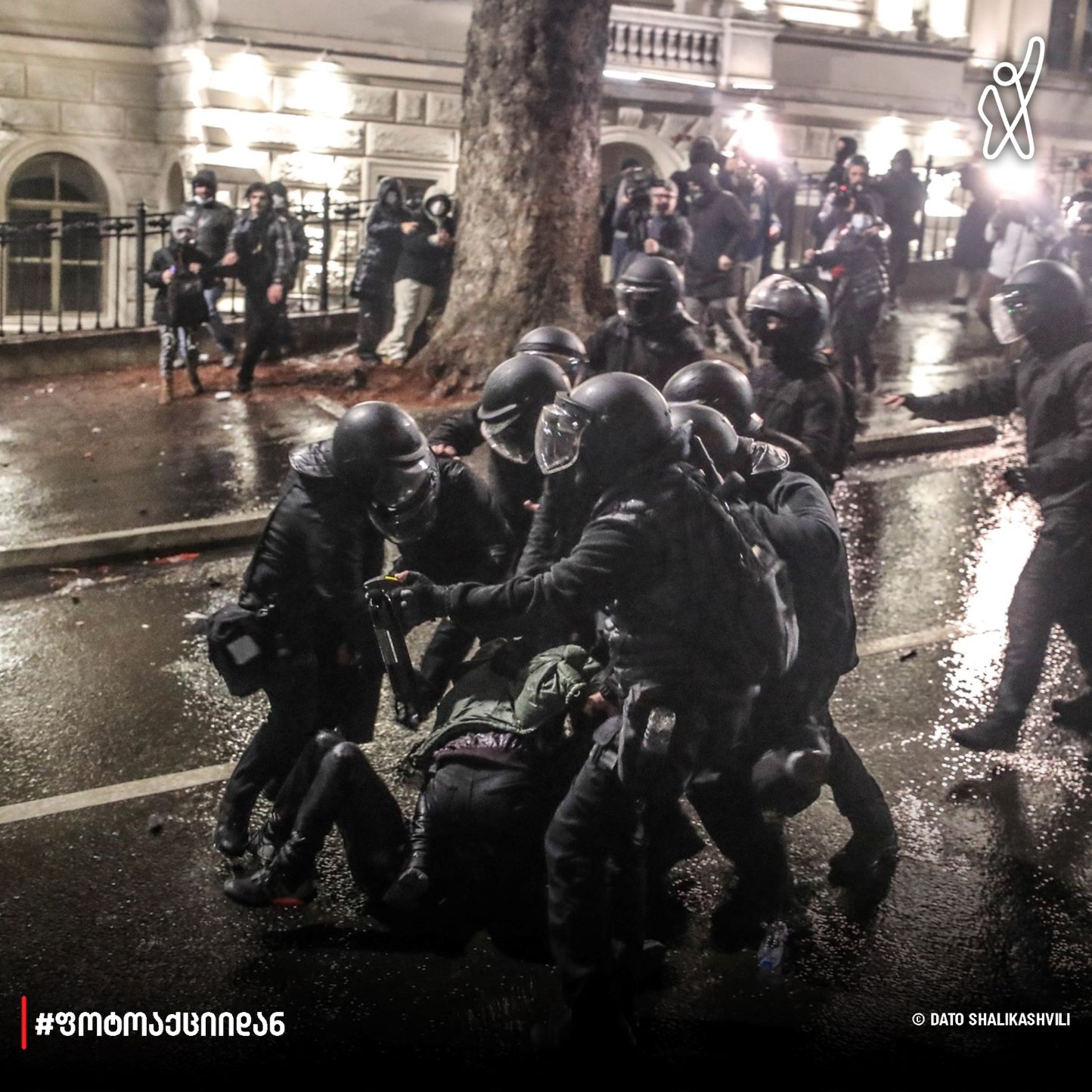 Протесты с участием тысяч человек проходили в грузинской столице вторую ночь. Против демонстрантов применили водометы и перечный газ, оттесняя их от здания парламента. Произошли жесткие задержания и избиения митингующих. При этом были созданы препятствия работе журналистов. В частности, спецназовцы избили журналиста Гиорги Квижинадзе. Людей избивали в театре, там душили девушек, людей били ногами в метро. У участников митинга травмы головы и лица. Некоторых пострадавших пришлось нести на носилках.