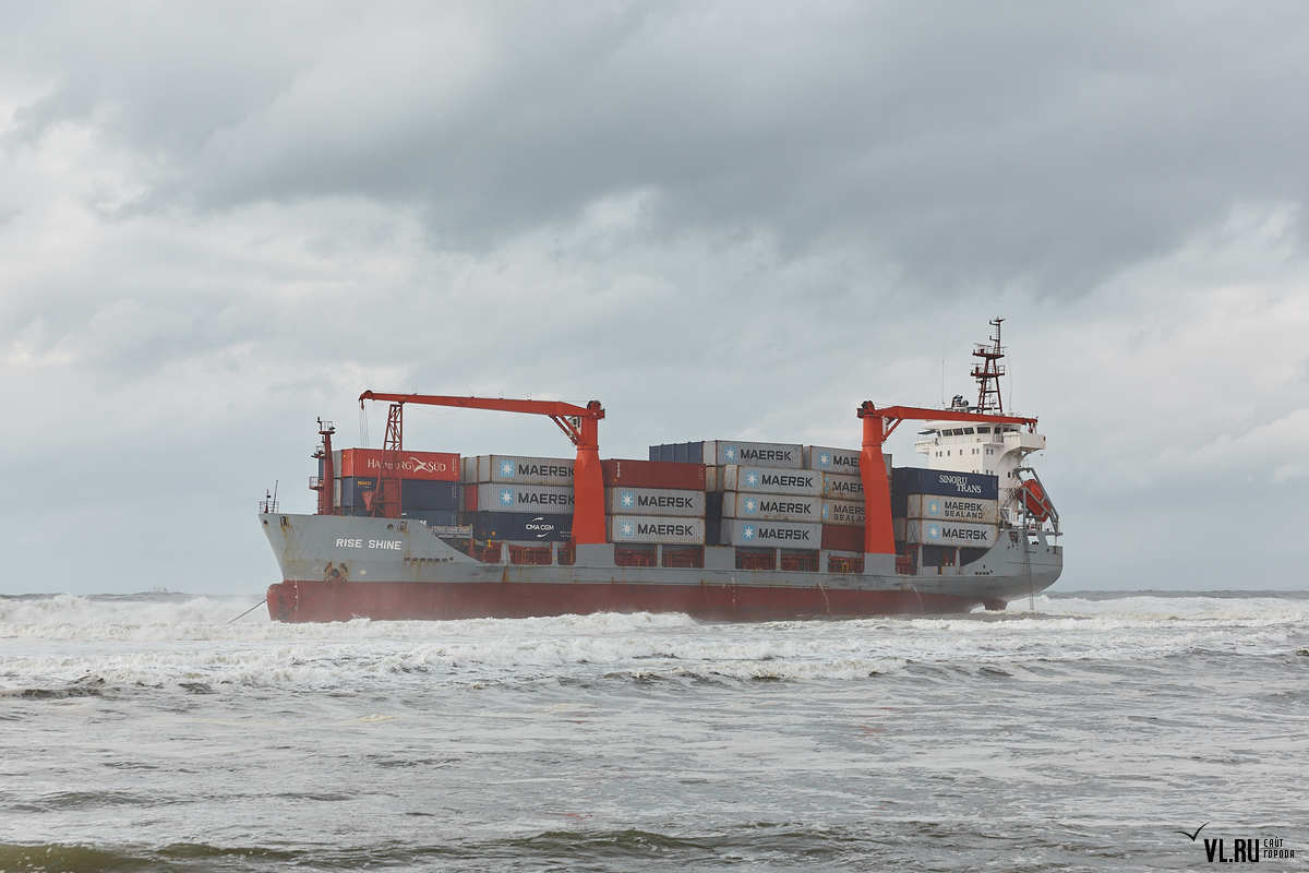 Ходивший под флагом Панамы контейнеровоз Rise Shine сел на мель и треснул по середине неподалеку от берега у мыса Козина близ Находки на российском Дальнем Востоке.