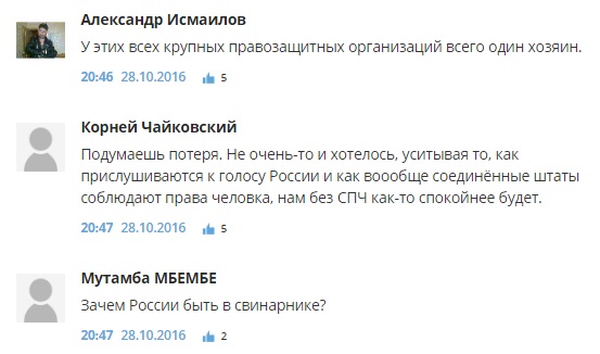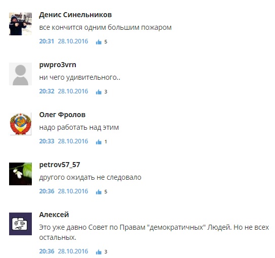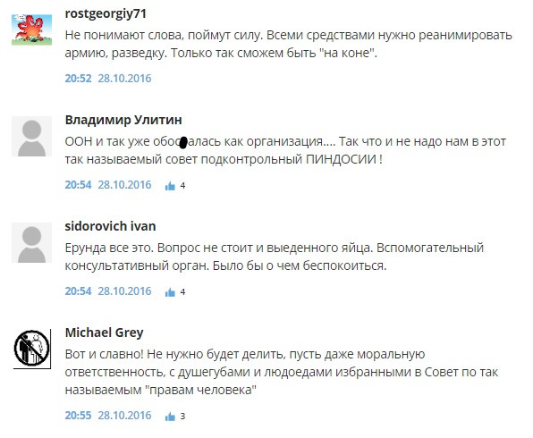 "Все кончится одним большим пожаром", "Истерия против России набирает обороты, надеюсь это станет причиной полного банкротства США", "Трагедию делать не надо", "Венгрия и Чехия в совете... Советовать нам будут как чего делать?) У них и голоса то своего нет", "Это уже давно Совет по Правам "демократичных" Людей. Но не всех остальных", "Ну значит прав у человека в мире станет еще меньше", - пишут комментаторы.