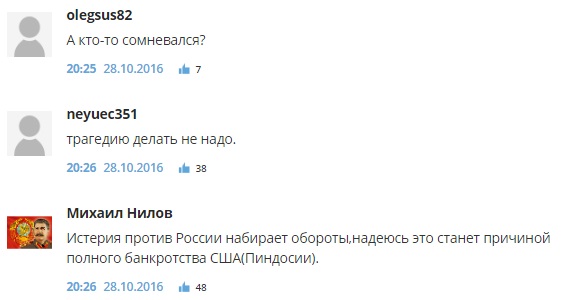 Свои эмоции по данному поводу россияне высказывают в комментариях к новости на сайте информагентства "РИА Новости".