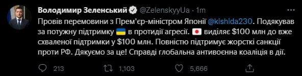 02:01. президент Зеленский провел телефонный разговор с премьер-министром Британии Джонсоном и президентом Польши Дудой об актуальной ситуации по вопросам безопасности. Согласили дальнейшие общие шаги по противодействию агрессору.