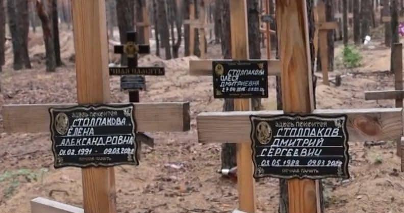 16:34 На месте массового захоронения под Изюмом обнаружили могилы шестерых членов одной семьи. Речь идет о семье Столпаковых: Елене, ее муже Дмитрии, их дочерях - 6-летней Олесе и 8-летней Саше, а также бабушке и дедушке - Татьяне и Александре.