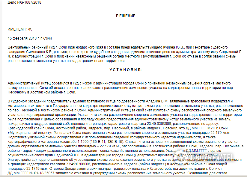 У администрации Сочи чета Януковичей сначала отсудила 1 га в Хостинском районе города, после чего узаконила еще 2,2 га земли для сельскохозяйственного использования в поселке Прогресс (Большой Сочи), который расположен на горном склоне, в междуречье Мацесты и Агуры, недалеко от берега Черного моря. По данным риелторов, цена здешних участков под индивидуальную жилую застройку - 22-74 тысяч долларов США за 6-8 соток. Стоимость земли, которой завладел Янукович, можно оценить почти в три миллиона долларов.