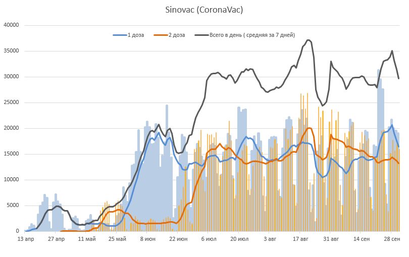 Свежие данные показывают, что сократилось использование всех видов вакцин, в том числе CoronaVac, Pfizer и AstraZeneca.