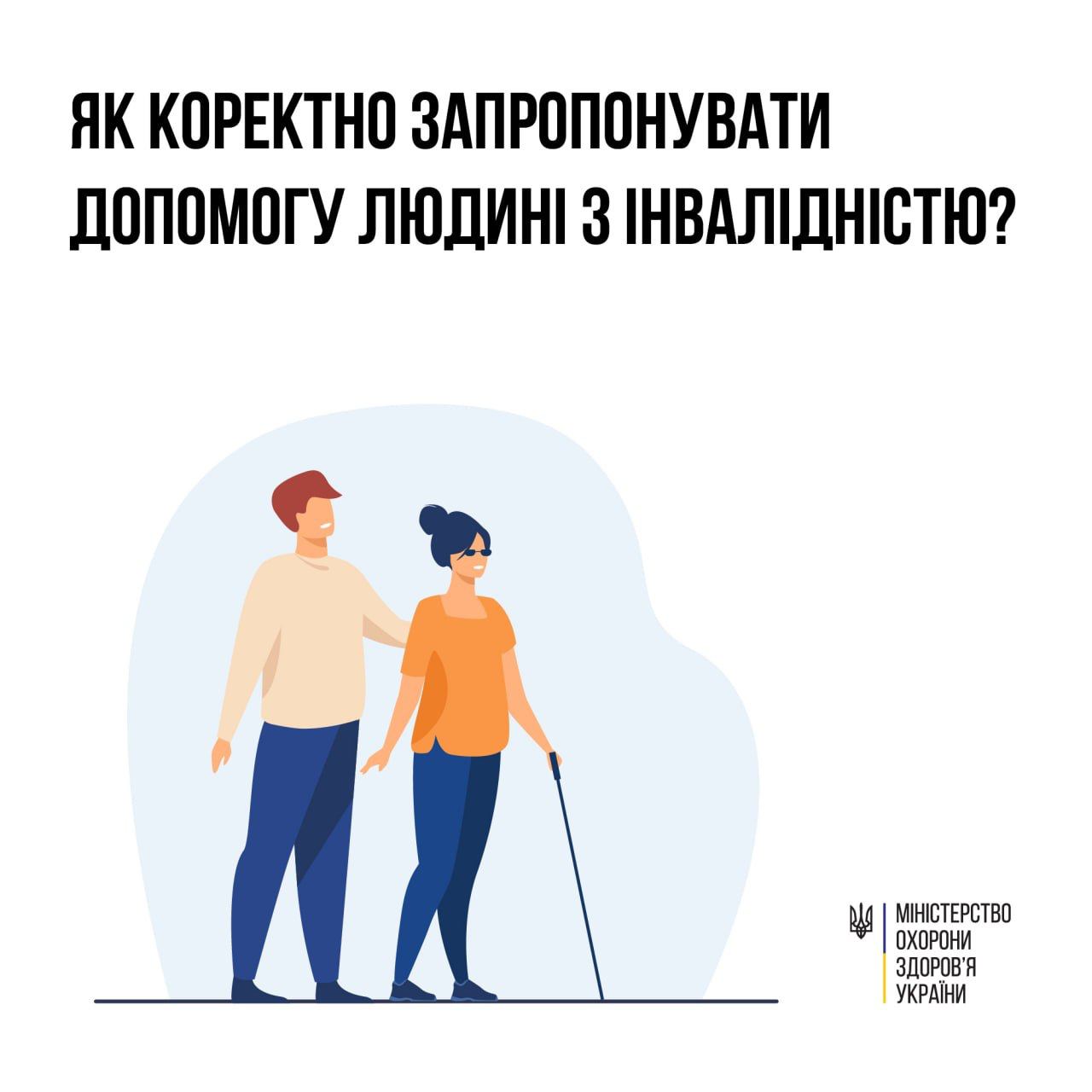 Чтобы люди с инвалидностью могли жить в Украине полноценной жизнью, городская среда должна стать для них инклюзивной и безбарьерной. Пока этого не произошло, каждый из нас может предложить посильную помощь людям, которым трудно передвигаться или выполнять другие действия в общественных местах. Чтобы сделать этого корректно, Министерство здравоохранения Украины выпустило простую инструкцию.