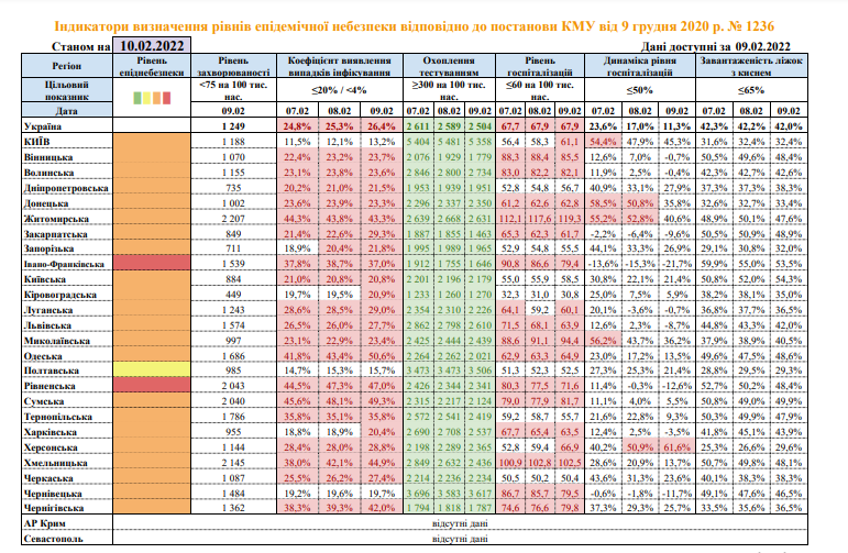 В Украине по состоянию на 10 февраля в "желтой" зоне карантина остается только одна область – Полтавская. Из нее были исключены Кировоградский, Днепропетровский и Запорожский регион.