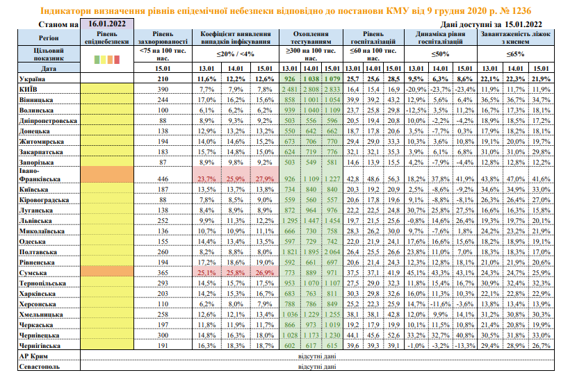 По состоянию на 16 января, в Ивано-Франковской и Сумской областях ухудшается эпидемическая ситуация с коронавирусом.