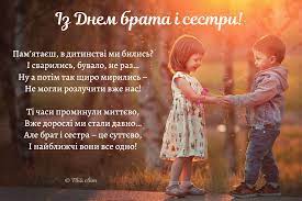 Вітаємо від душі з прекрасним святом, Днем братів і сестер! Сестри і брати - це не просто наші рідні люди, це наша опора і підтримка у важку хвилину, наші найбільш вірні й віддані друзі, наш зв'язок зі світом дитинства і рідною домівкою. Частіше зустрічайтеся з рідними, бережіть один одного, будьте здорові і щасливі.