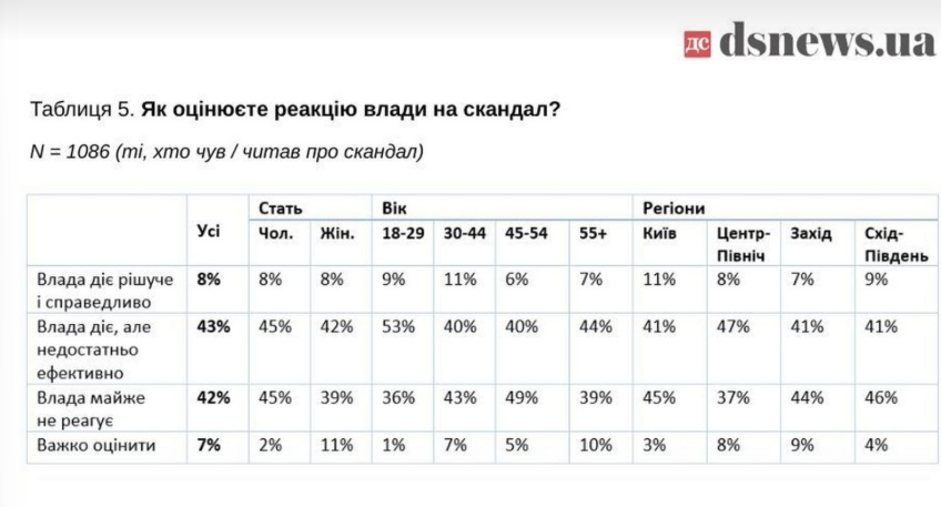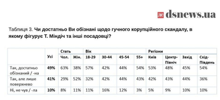 Загалом, "90% українців знає про цей скандал, і це один з найвищих показників обізнаності про внутрішньополітичні процеси за останні роки", пишуть автори опитування.