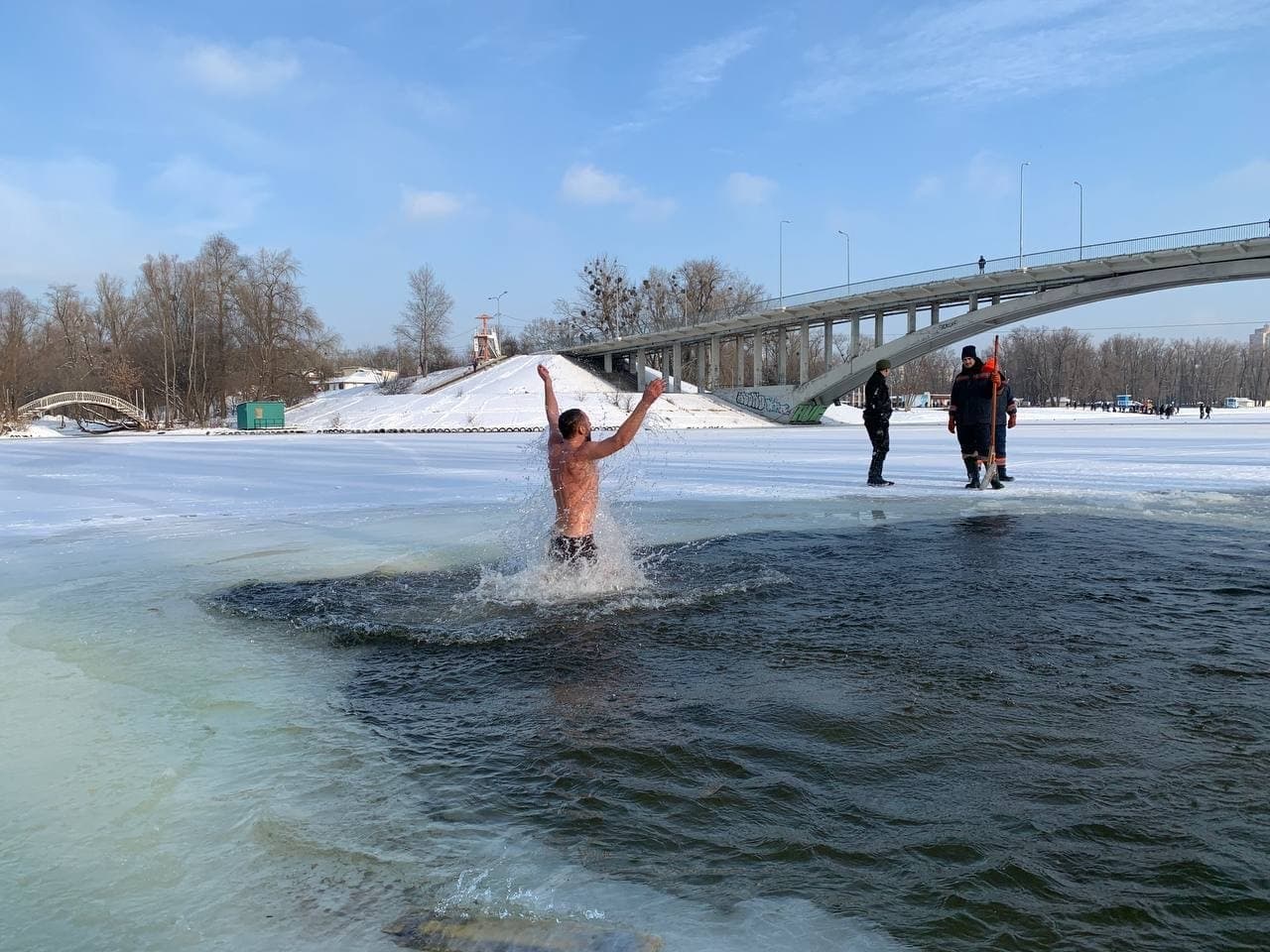 Цього дня і в столиці України, і в багатьох інших містах люди приходили до ополонок, щоб зануритися і, за повір'ям, оздоровитися в крижаній воді.