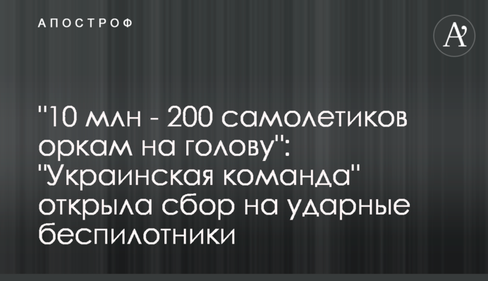 "Відкриваємо новий великий збір на ударні безпілотники. В них виросли крила, а отже, вони тепер можуть долати в рази більшу відстань та нести на собі в рази важчий боєприпас. Хлопці регулярно передають усі ваші найзапекліші "вітання" оркам. І ми з вами їм в цьому ще більше допоможемо", - йдеться у повідомленні "Української команди".