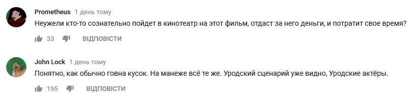 Зокрема, на відеохостингу Youtube, де був опублікований офіційний трейлер фільму, користувачі не вибирали виразів, коментуючи побачене.