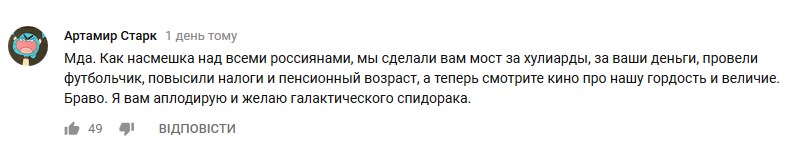 У коментарях під відео користувачі цікавляться, чи можна безкарно дізлайкать відео (іронізуючи над кримінальними справами в Росії за поширення мемів, - Апостроф), а також пропонують показати фільм пенсіонерам, за чиї гроші і був побудований цей міст.