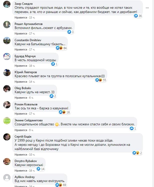 Користувачі соцмереж жартують, що кавуни біжать на батьківщину і навіть вони хочуть емігрувати. Хтось навіть поцікавився, чи не херсонські чи кавуни. Один з коментаторів пожартував, що у кавунів розпочався нерест.