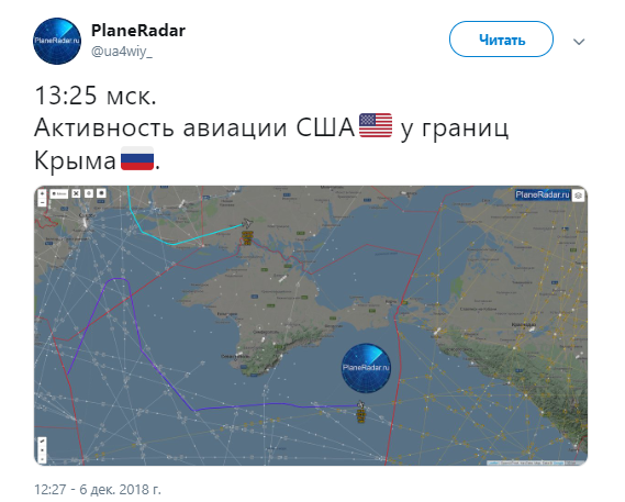 Як повідомляв "Апостроф", 26 листопада літак радіоелектронної розвідки Військово-повітряних сил США злетів з авіабази на острові Крит і попрямував в напрямку акваторії Чорного моря.