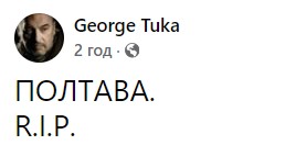 Також про трагедію у Полтаві повідомив колишній заступник міністра у справах тимчасово окупованих територій Георгій Тука.