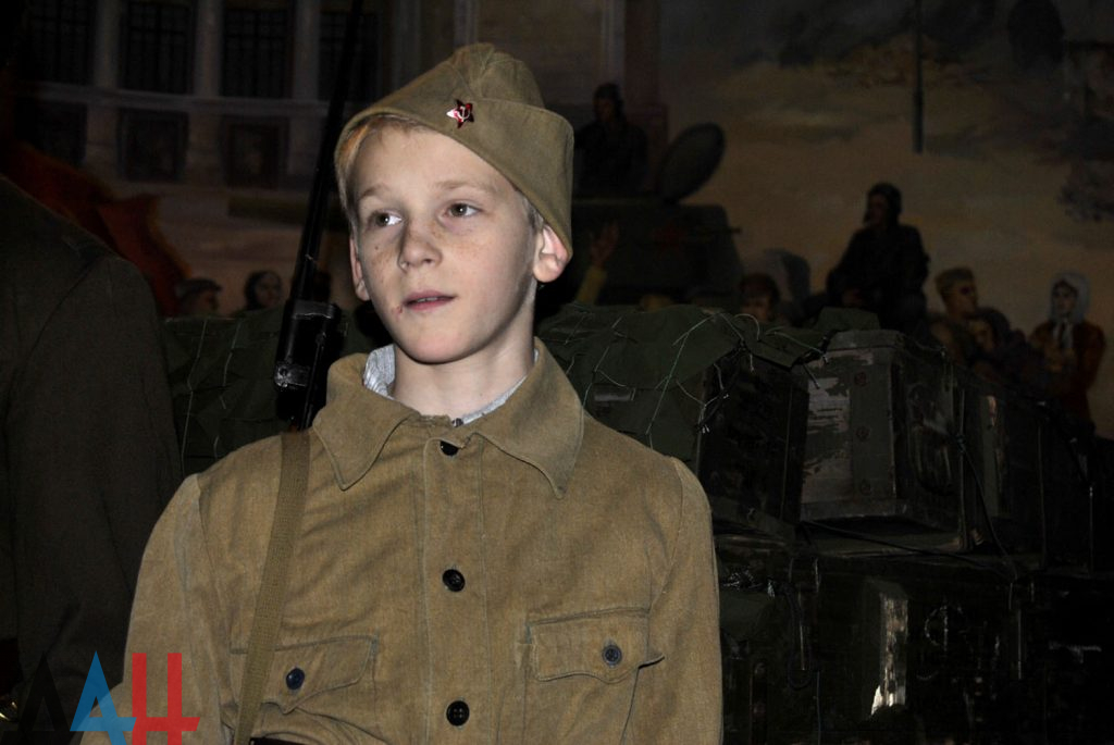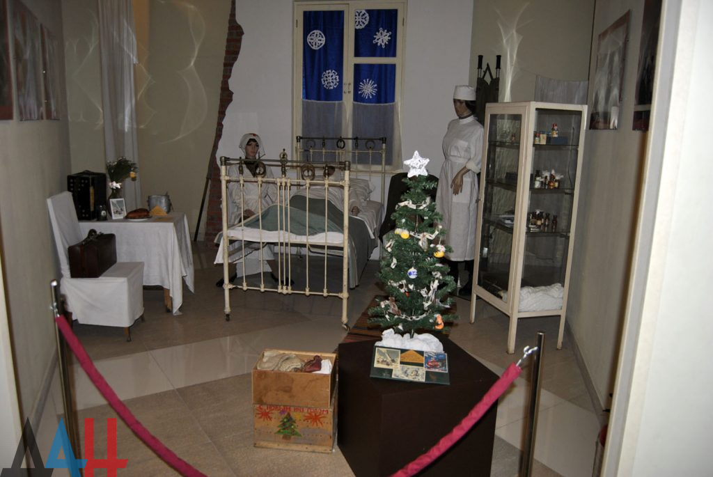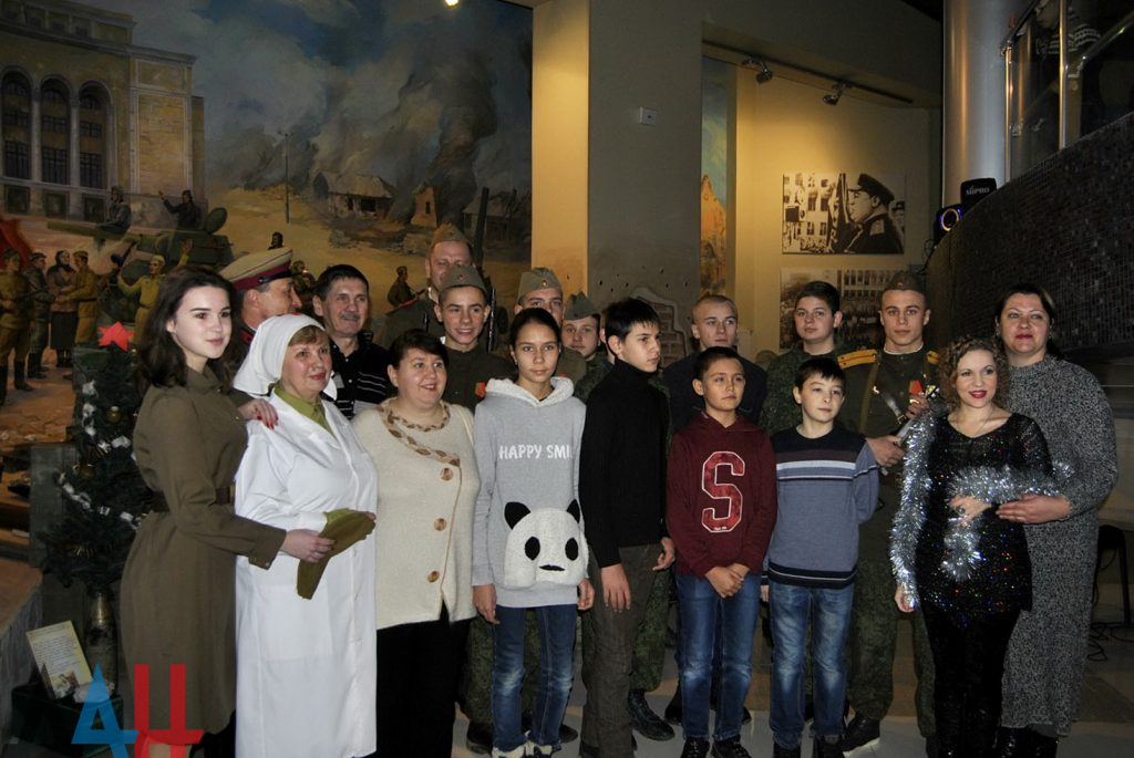 Сьогодні, 5 січня, в підконтрольному бойовикам місті ДНР Донецьк співробітники музею Великої Вітчизняної війни провели для дітей театралізовану екскурсію "Новий рік на фронті", реконструювавши обстановку свята в партизанському загоні і військовому госпіталі.