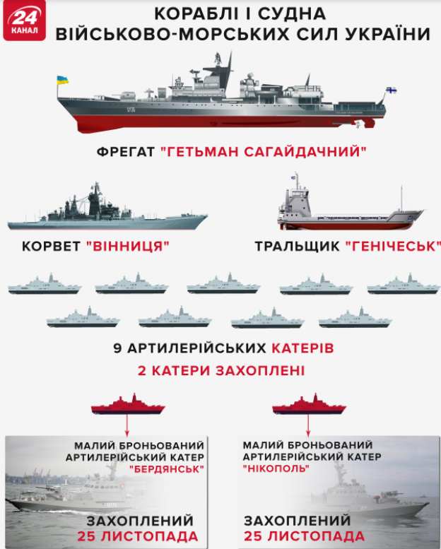 Тому український флот тимчасово втратив ще три одиниці військово-морської техніки разом з екіпажами. І кількісно його стан виглядає наступним чином.