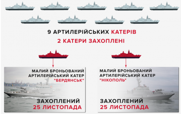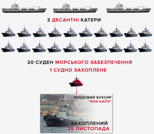 Пізніше російські військові кораблі відкрили вогонь по українських суднах в Керченській протоці і захопили їх.