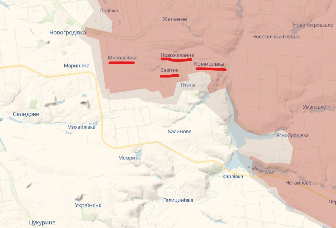 Росіяни захопили Комишівку, Завітне та Новожеланне. Також армія РФ просунулась в районі Миколаївки.
