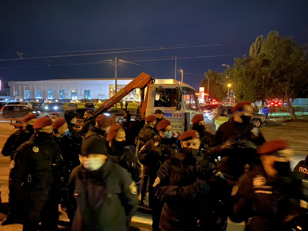"Поліція пригнала евакуватор щоб забрати авто, яке стоїть на в"їзді до суду", - написав в Twiter активіст Сергій Стерненко.
