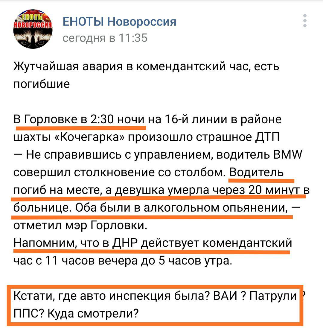 Автори публікаціі у сепаратистських ЗМІ дивуються, чому загиблі проігнорували комендантську годину, який діє на окупованих територіях з 23.00 до 5.00.