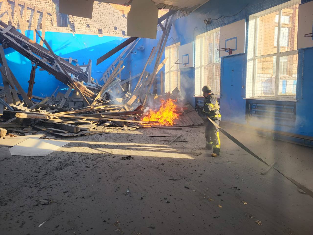 "Пошкоджена будівля навчального закладу, у приміщенні спортзалу сталася пожежа", - зазначив він.