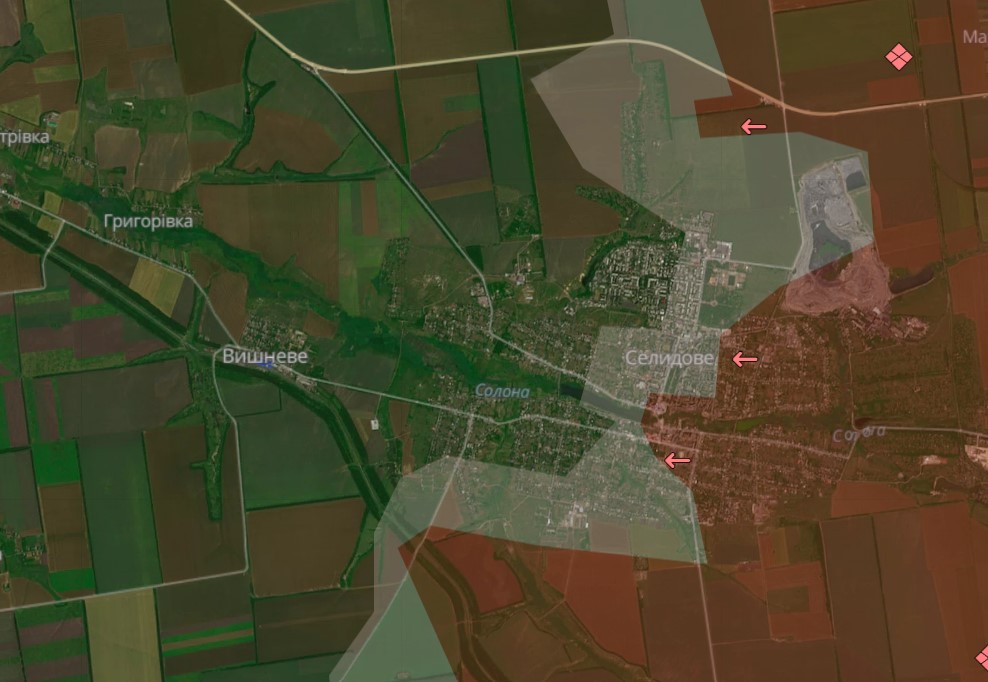 У Донецькій області російська окупаційна армія прорвалась до села Вишневого, розташованого на захід від міста Селидове.