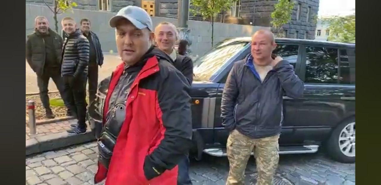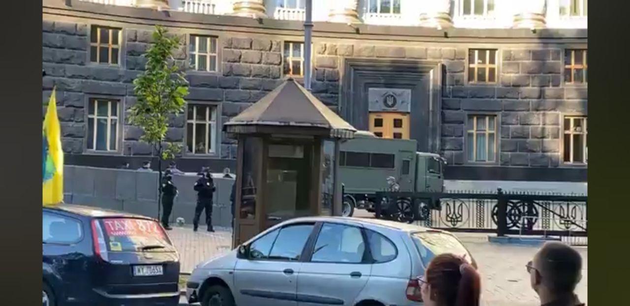 "Уздовж дороги біля урядової будівлі припаркована досить велика кількість автомобілів. Біля них стоять розрізнені групи людей, які готуються до протестної акції", - повідомляють журналісти.
