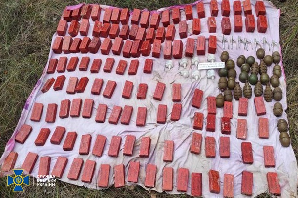 На місці співробітники СБУ вилучили 126 тротилових шашок загальною вагою 36 кг, засоби ініціювання вибухів; 29 гранат Ф-1, РГО, РГН і РГД.