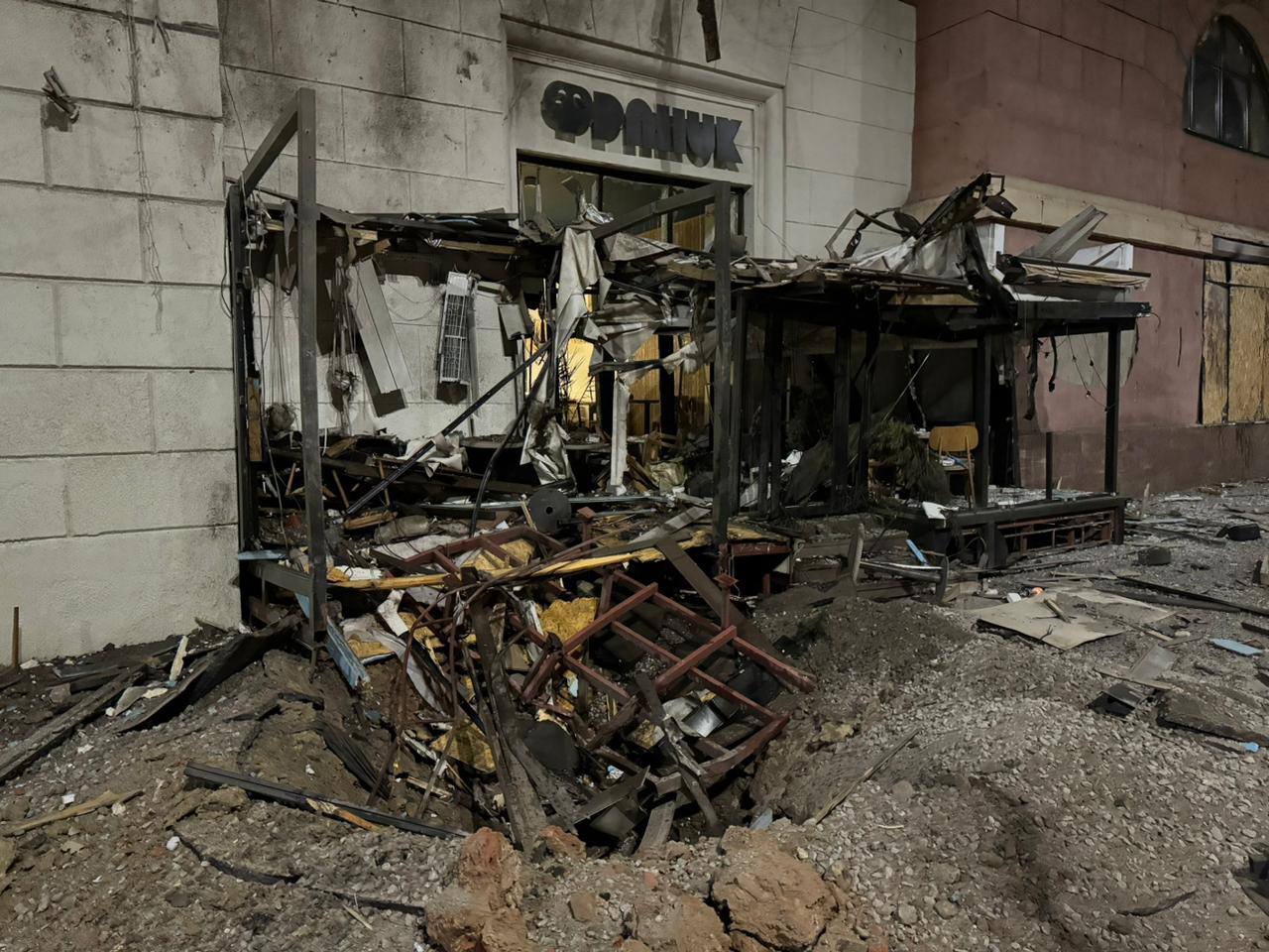 За словами міського голова Ігоря Терехова, в центрі міста зазнали пошкоджень кафе, житлові будинки та офіси.