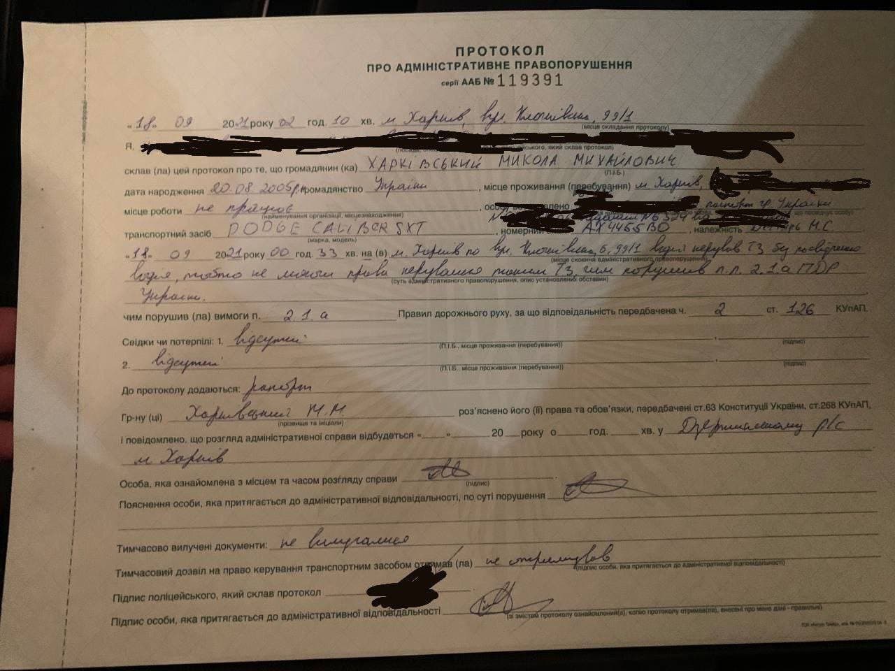 16-річного Миколу Харківського, який увечері 26 жовтня влаштував смертельну ДТП у Харкові за кермом Infinity, вже неодноразово штрафувала поліція за порушення правил дорожнього руху.