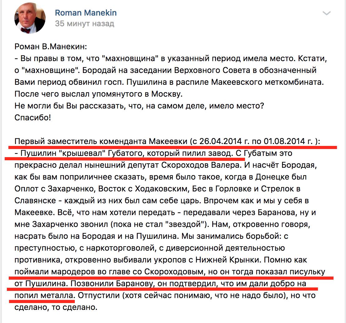 У пості Манекіна детально розповідається, хто кого кришував під час розпилу заводів на метал.