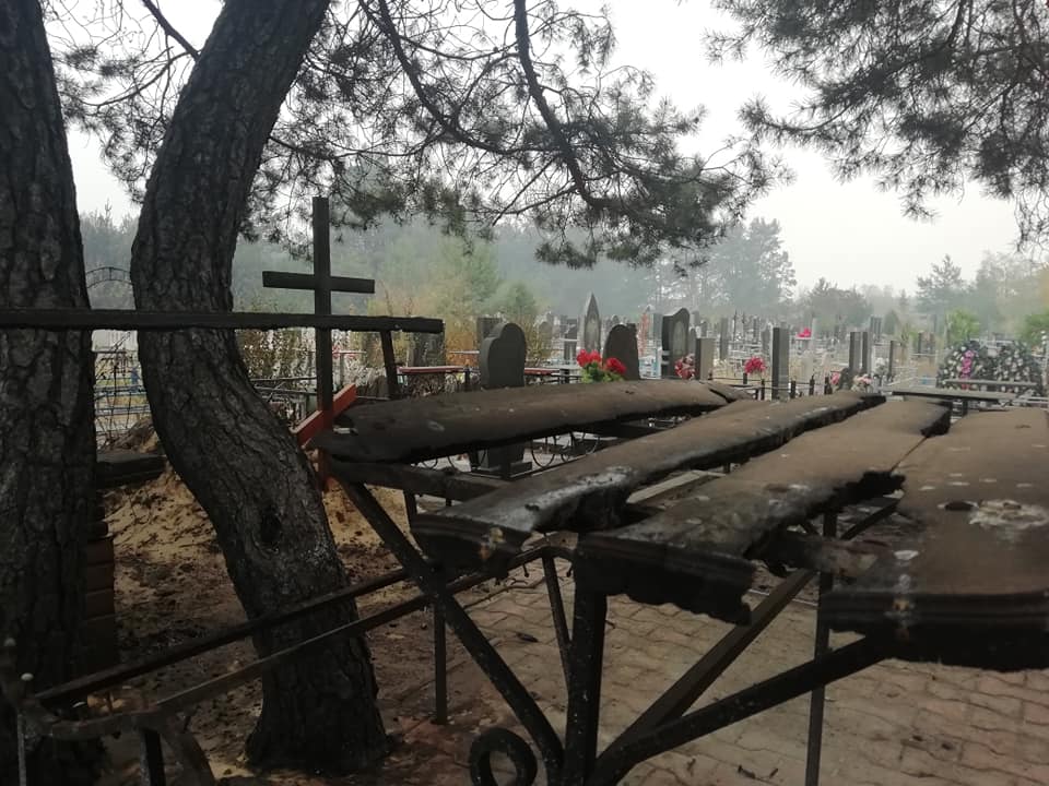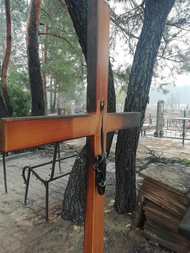 На фото видно повністю обгорілі могили, пам'ятники і хрести - вогонь не залишив нічого живого.