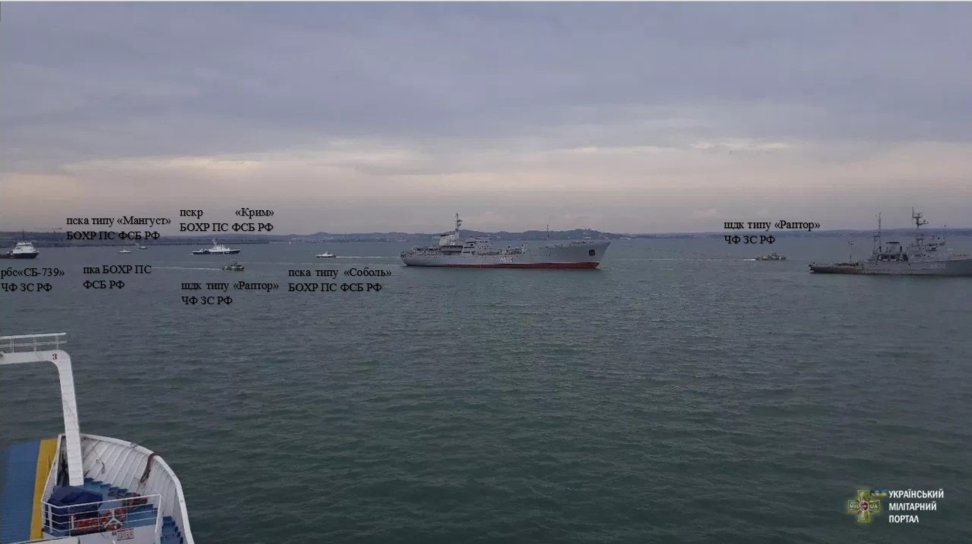 Як повідомили в МВС України, перехід до Керченської протоки і через неї проходив у складній обстановці. На Чорному морі кораблі українських ВМС безпосередньо супроводжувалися розвідувальним кораблем Чорноморського флоту "Приазов'я" і прикордонними сторожовими кораблями РФ "Аметист" і "Дон".