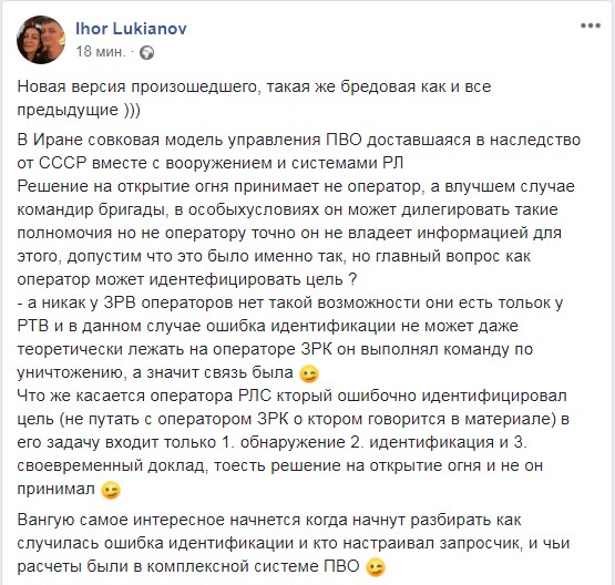 Лук'янов також припустив, що "найцікавіше почнеться, коли візьмуться розбирати як трапилася помилка ідентифікації і хто налаштовував запитувач, і чиї розрахунки були в комплексній системі ППО".