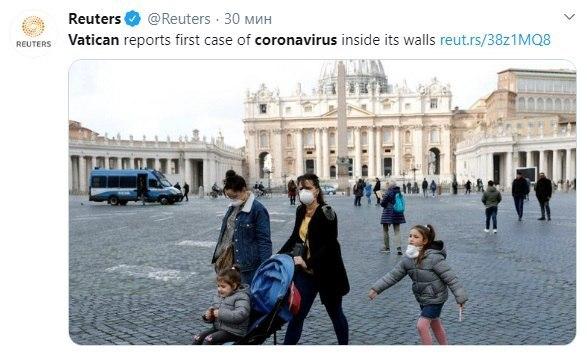 Перший випадок захворювання коронавірусом зафіксували у Ватикані. Амбулаторні служби держави призупинили роботу, щоб почати дезінфекцію.