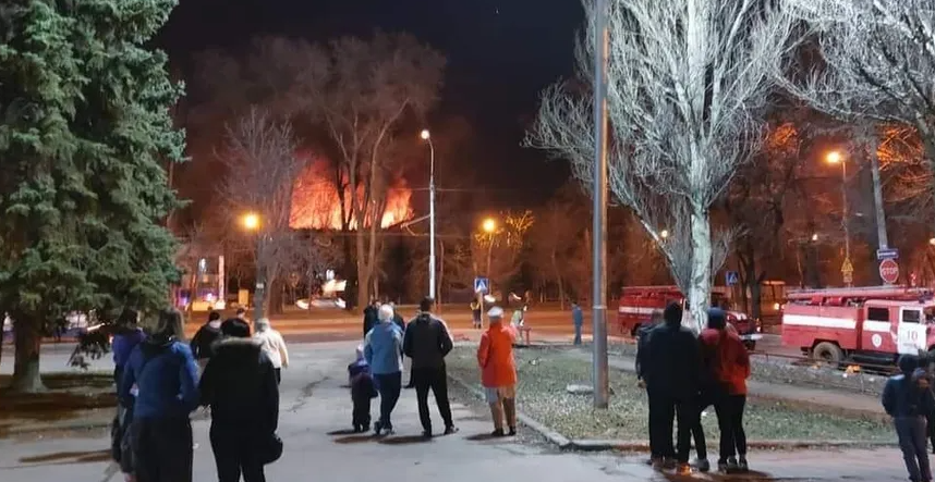 Пожежа сталася в Калінінському районі окупованого Донецька. Так званий "голова міської адміністрації" Донецька Олексій Кулемзін заявив, що загорілася покрівля будівлі Донецького м'ясокомбінату.