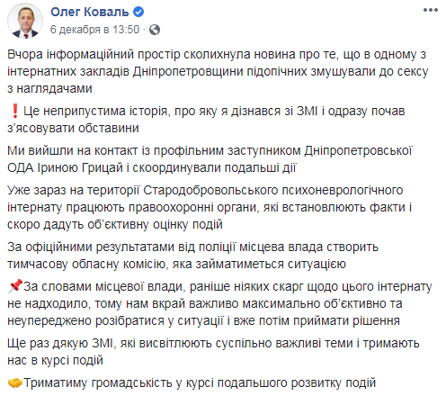 За його словами, вже зараз на території Стародобровольського психоневрологічного інтернату працюють правоохоронні органи, які встановлюють факти і скоро дадуть об'єктивну оцінку подій.