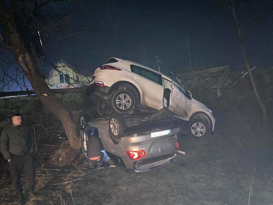 Інцидент стався в селі Микуличин біля закладу "Пан Коцький". Там з дороги в один день з інтервалом в кілька годин злетіли авто Mercedes, Fiat і KIA.