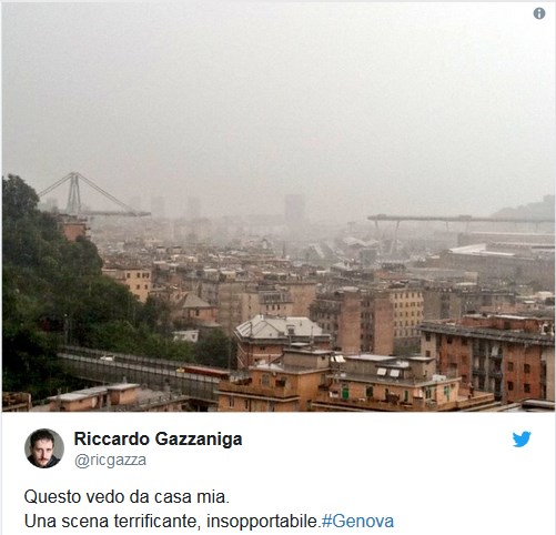 Як повідомляв "Апостроф", обрушилася велика секція моста Моранді над річкою Полчевера. Довжина моста - більше кілометра, а висота - 90 метрів.