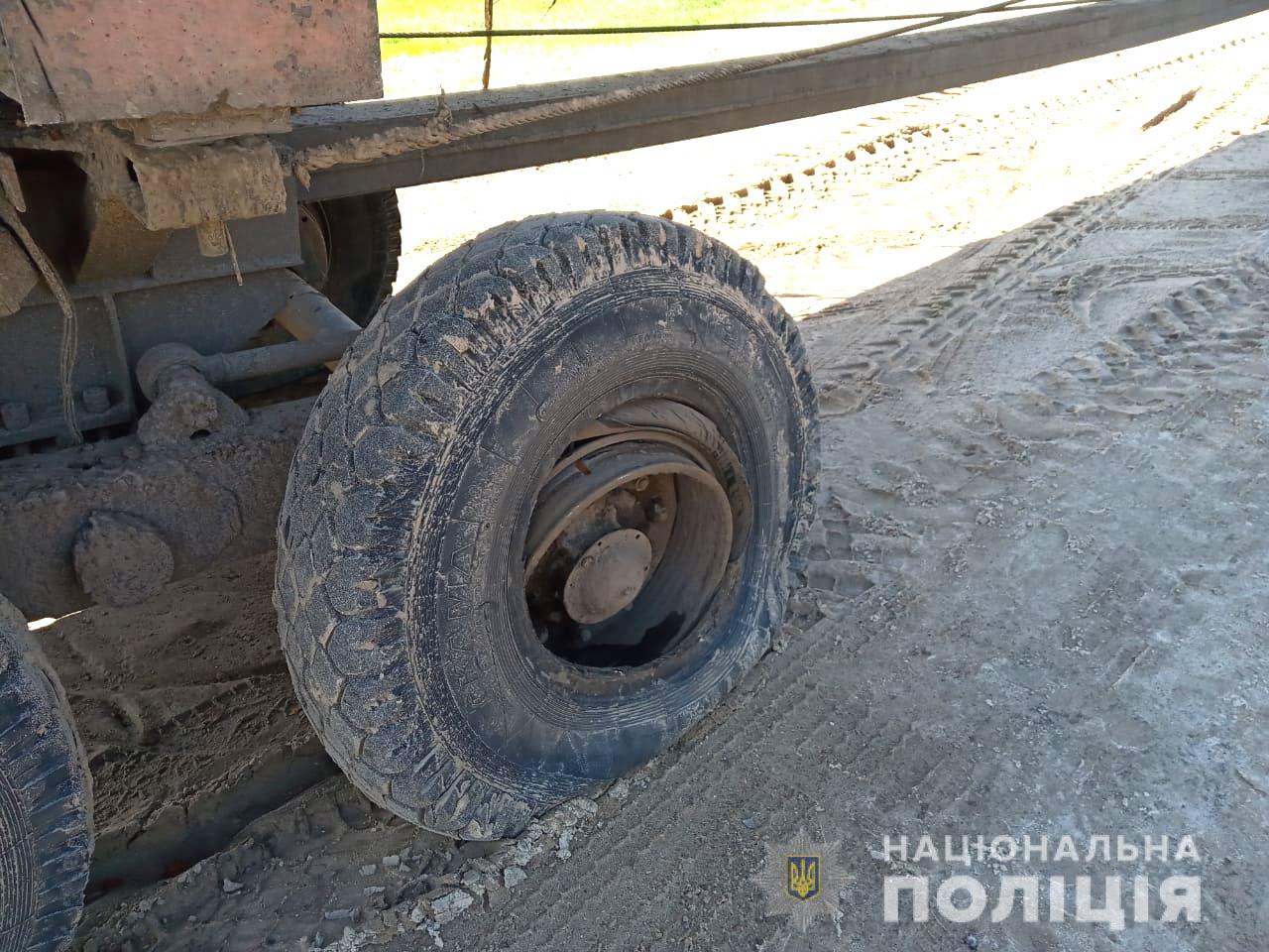 Під час руху у лісовоза-вантажівки "Урал-4320", який був навантажений деревиною, відпало кільце диска колеса.
