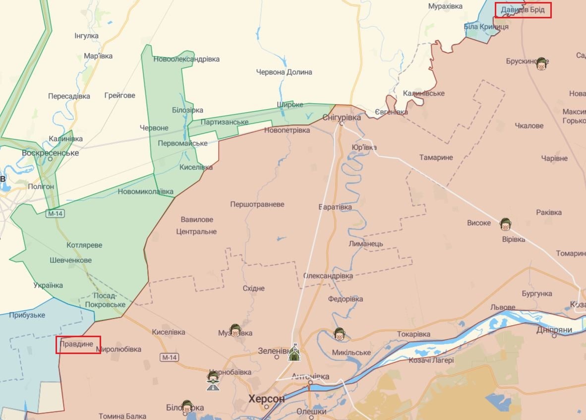 У червоних рамках н.п., де ЗСУ нанесли удари по ворогу